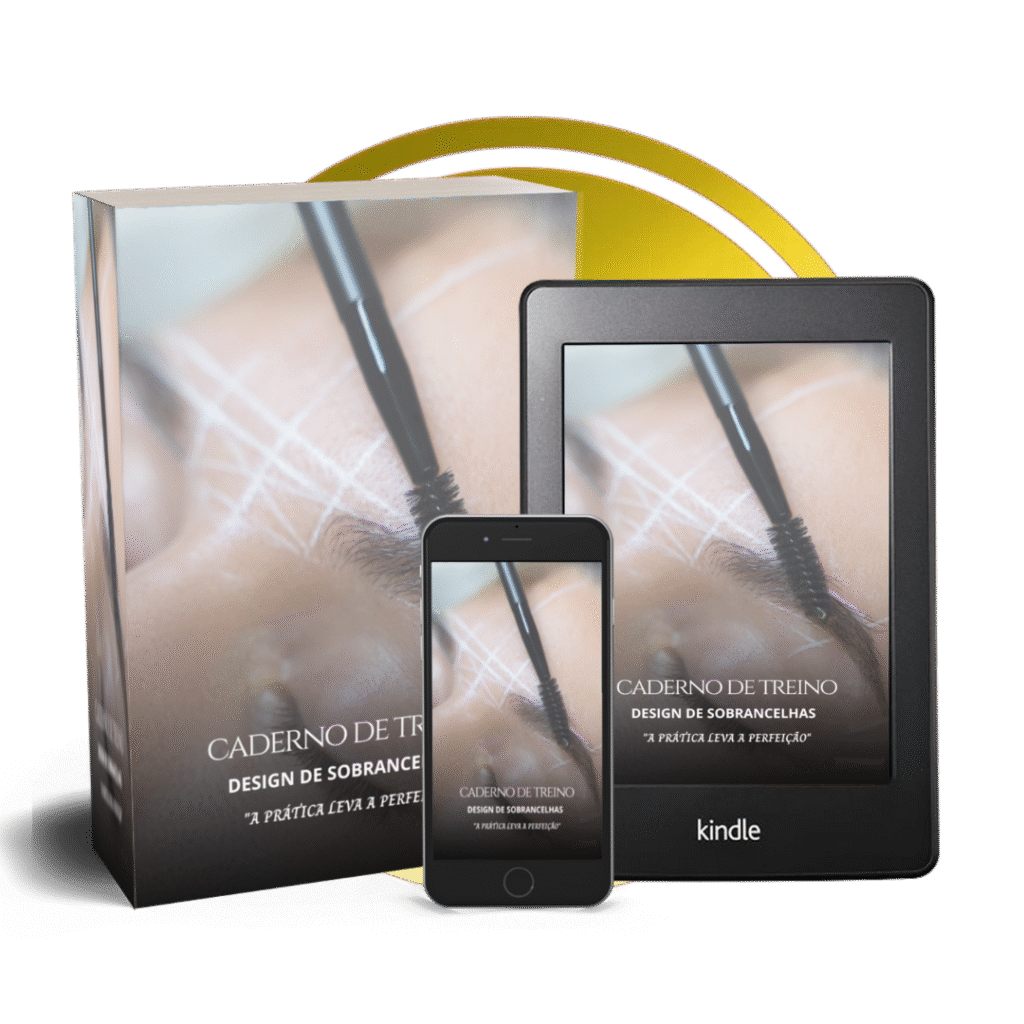 Mais de 60 páginas de exercícios práticos e o passo a passo da marcação de sobrancelhas para você treinar ou entregar para suas alunas.